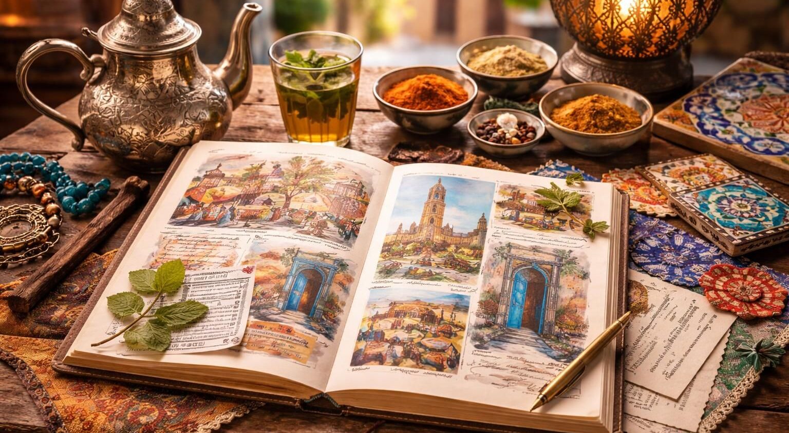 - Peinture à l’aquarelle: Utiliser des aquarelles peut donner une dimension vivante à vos pages, rappelant les couleurs du Maroc.